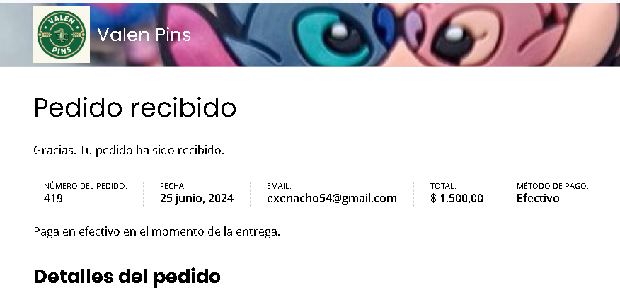 6- Finalmente, el pedido se completa correctamente y se coordina con el vendedor la entrega del mismo.